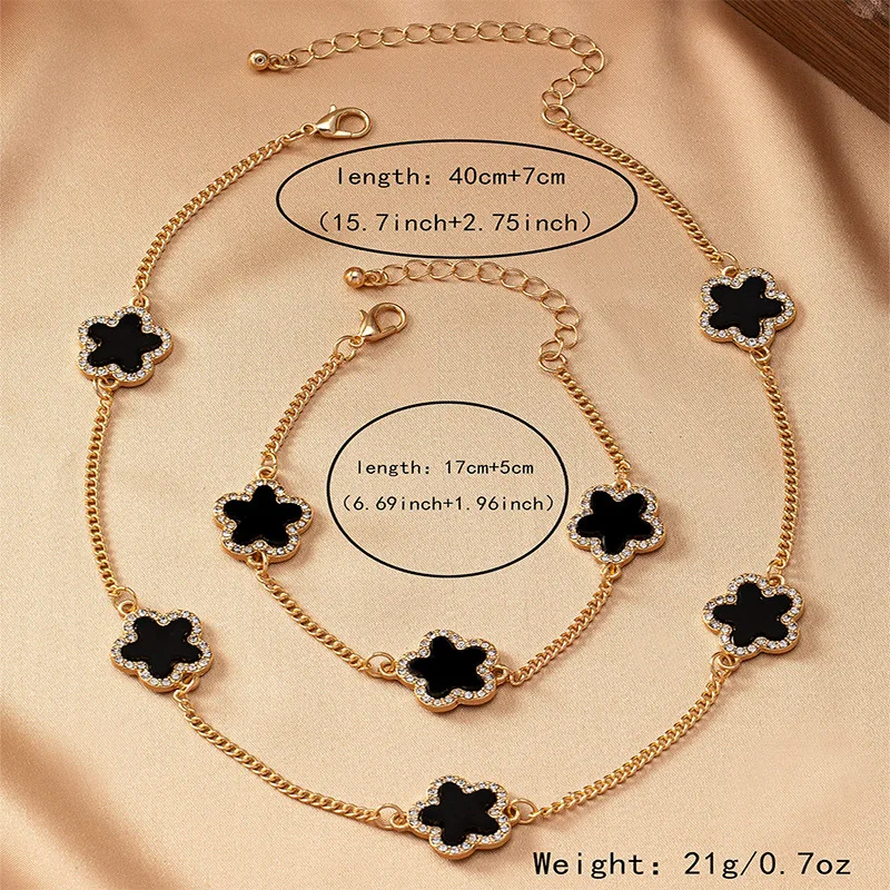Jewelry Sets For Women Geometric Glass Enamel Flower Necklace Bracelet Two-piece Set Party Gift OL Holiday S018